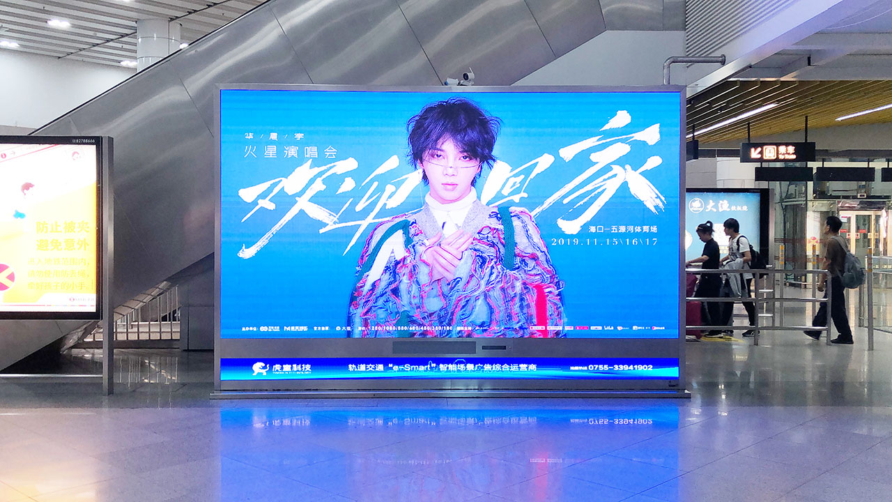 “2019华晨宇火星演唱会”在嗨唱前夕,借助深圳虎童科技有限公司运营的深圳地铁4号线庞大客流,与全线覆盖地铁4号线的强势地铁媒体,通过虎童科技独家运营的超大高清LED大屏的强大视觉冲击,进行了高效传播。