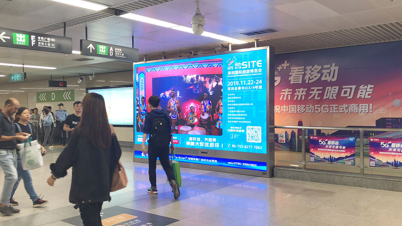 本届展会与深圳虎童科技有限公司合作,通过虎童科技运营的地铁独家大屏媒体资源,借助资源屏幕面积大、高清、人流密集等显著优势,以及融声、光、电于一体等优点,把本届“品质旅游,嘉年盛会”的展会主题,推向大众,是深圳区域内品牌广告和效果广告的优选媒体。