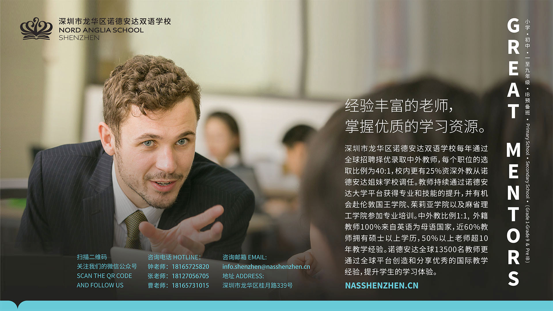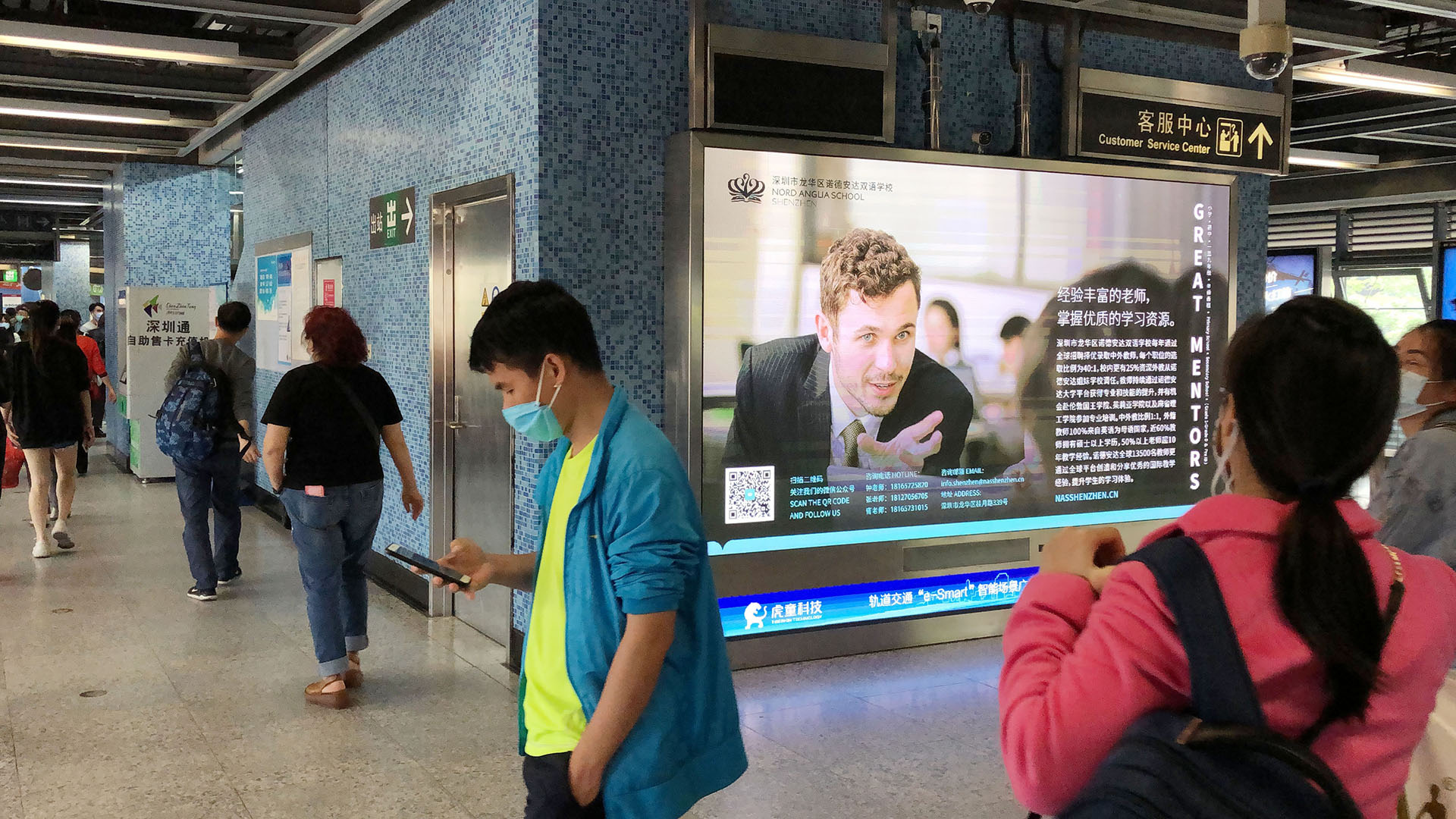 深圳市龙华区诺德安达双语学校借助深圳虎童科技运营的深圳地铁4号线大屏媒体的独家资源,扩大宣传其“全球校园”的学习平台,帮助学生丰富课外生活、扩大知识储备、开阔全球眼界。此平台连接了全球28个国家、61所学校的61,000多名学生,使学生足不出户便能享受全球优质的教育资源。