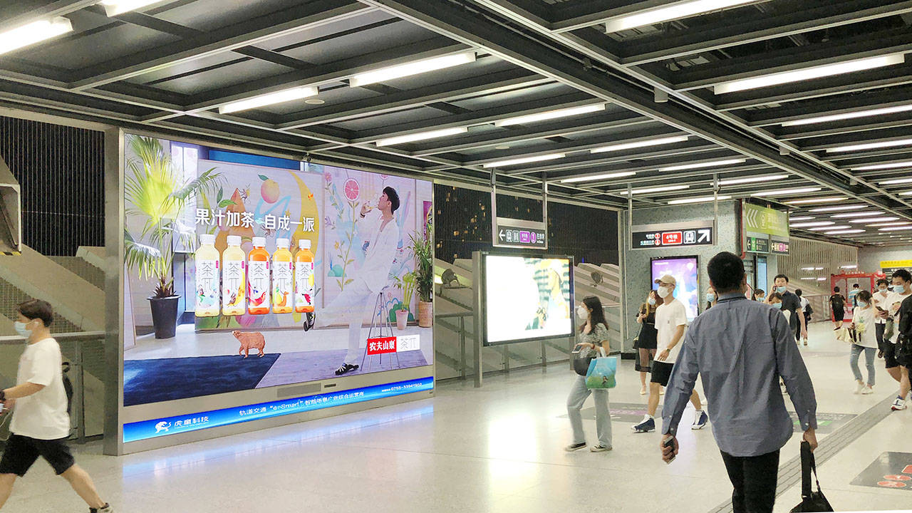 虎童科技地铁大屏媒体以大面积、高清晰、位置佳、音效强等著称,全线日覆盖客流量高达200万人次,由于深圳地铁4号线是贯穿深圳的中轴大线,几乎全城的客流都频繁的在这条动脉干线上交汇,无论是远出近归还是日常通勤,海量人流为广告效果进行反复加持,日均超过60万人次的商业消费与高度活跃的地铁客群相融相汇,使之成为深圳最受欢迎的媒体渠道之一。