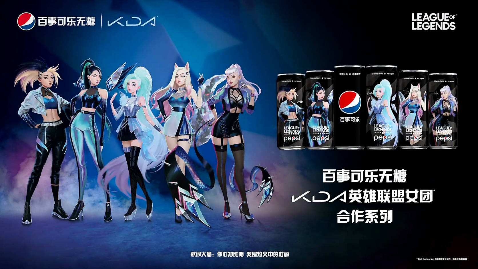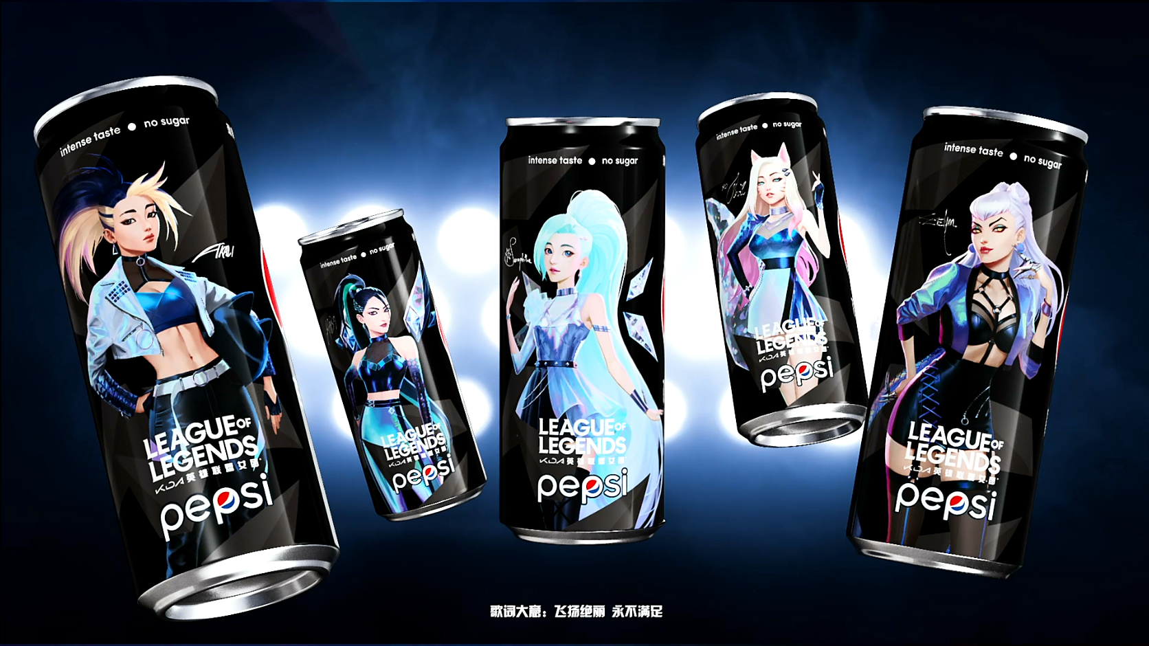 百事自带超强音乐属性,对音乐潮流的追求、对音乐文化的培育与传达是无法复刻的。通过百事可乐无糖自身 " 超敢 " 基因与 KDA 女团 " 无畏 " 态度鲜明融合,结合五位英雄最新形象,打造五款系列限量罐,人气英雄角色跃然罐身。