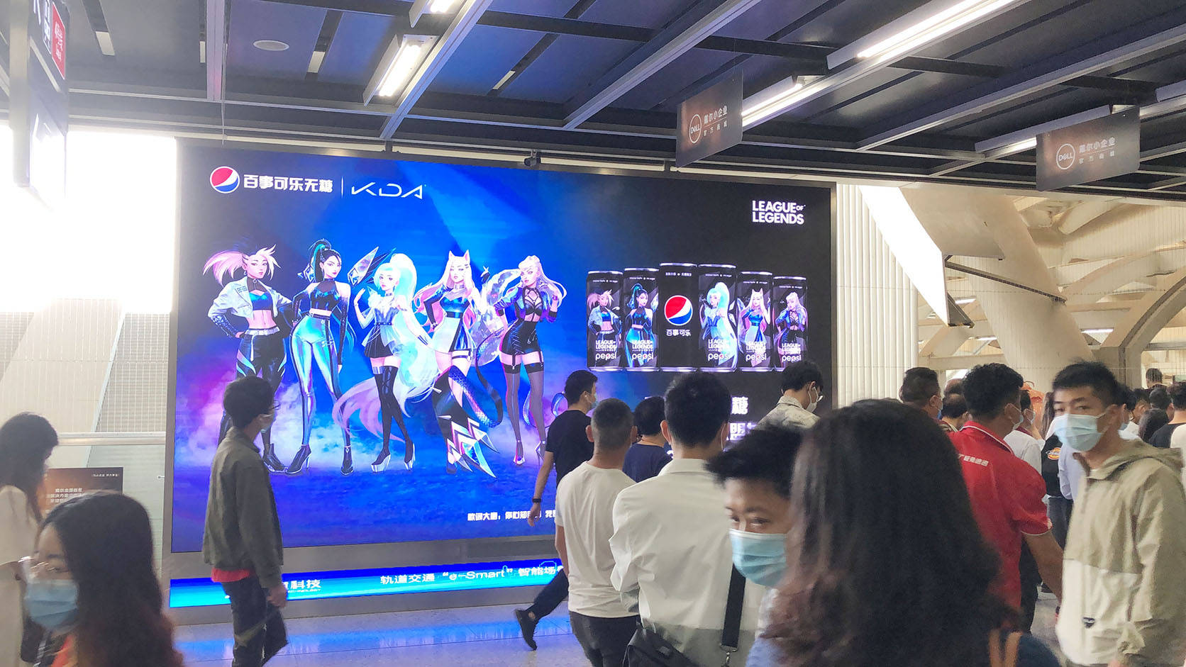 近日,百事可乐无糖 " 超敢 " 携手知名游戏 IP《英雄联盟》女团 KDA,推出合作系列限量罐、联名礼盒等,并且联合推出 15 秒态度音乐短片,通过深圳虎童科技有限公司独家运营的自有媒体地铁场景大屏,更淋漓尽致得展现出百事可乐无糖的 " 超敢 " 年轻态度。礼盒由为五位英雄量身打造的专属空间组成,打开每一面后,将系列限量罐放置于“闪耀主舞台”中,就能聆听到五位英雄专属的音乐片段。