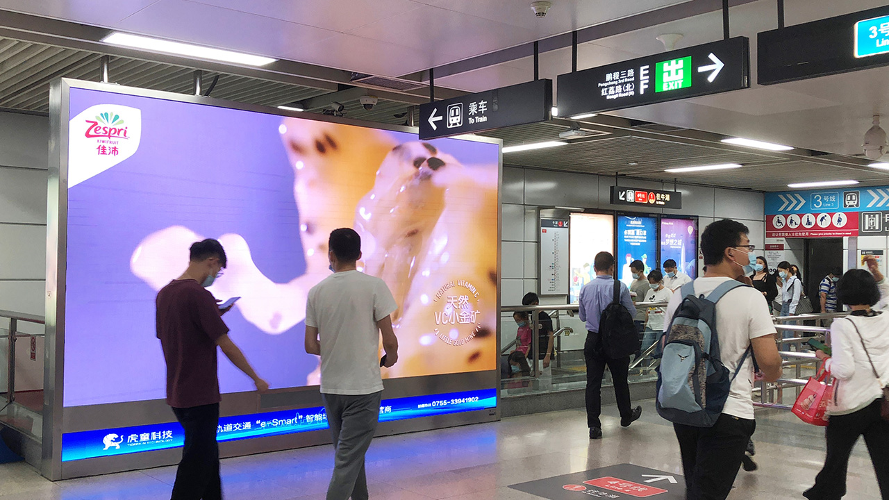 虎童科技是深圳地铁当下独家高清智能大屏媒体运营商,媒体以位置好、视觉冲击力强、音效撩人等优势广受顶级品牌青睐,本着与客户同行,与消费者同行的理念,致力于将地铁场景智能大屏媒体的优势和价值持续深耕,为广大乘客提供更好的视觉享受,为合作品牌营造最具费效比的推广平台。