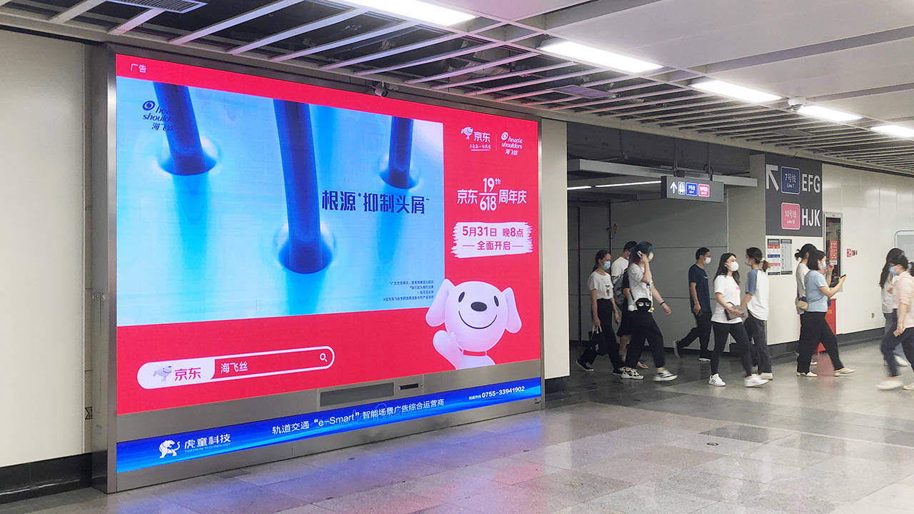 虎童科技地铁大屏媒体以大面积、高清晰、位置佳、音效强等著称,全线日覆盖客流量高达200万人次,由于深圳地铁4号线是贯穿深圳的中轴大线,几乎全城的客流都频繁的在这条动脉干线上交汇,无论是远出近归还是日常通勤,海量人流为广告效果进行反复加持,日均超过70万人次的商业消费与高度活跃的地铁客群相融相汇,使之成为深圳最受欢迎的媒体渠道之一。